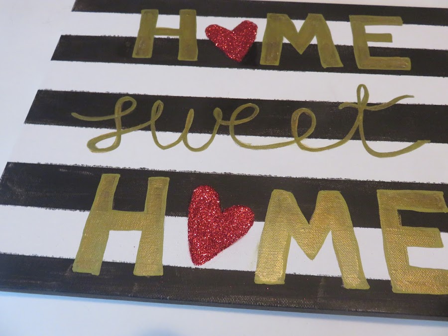 - El siguiente paso......, dibuje con el lapiz las palabras HOME SWEET HOME. Una vez dibujadas las letras pase a pintarlas con el rotulador dorado.