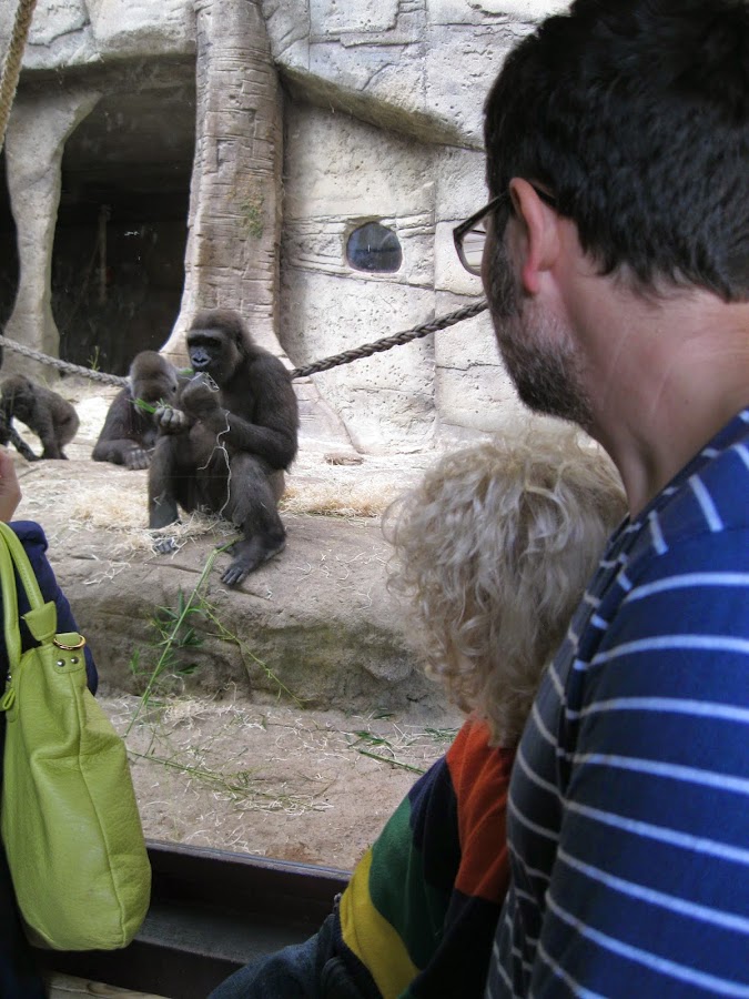 Después fuimos a ver a los Gorilas, nos costó un poco encontrarlos, porque el cartel de "Tierra de Gorilas" estaba un poco tapado por la vegetación y las indicaciones las leímos mal, pero verlos fue impresionante. Impresiona como unos seres tan grandes y poderosos, con esas manazas, transmiten una sensación de fragilidad tan fuerte. Era un grupo familiar de gorilas, con sus cachorros y resultaban tan humanos que entiendo perfectamente a los del proyecto "Gran Simio".