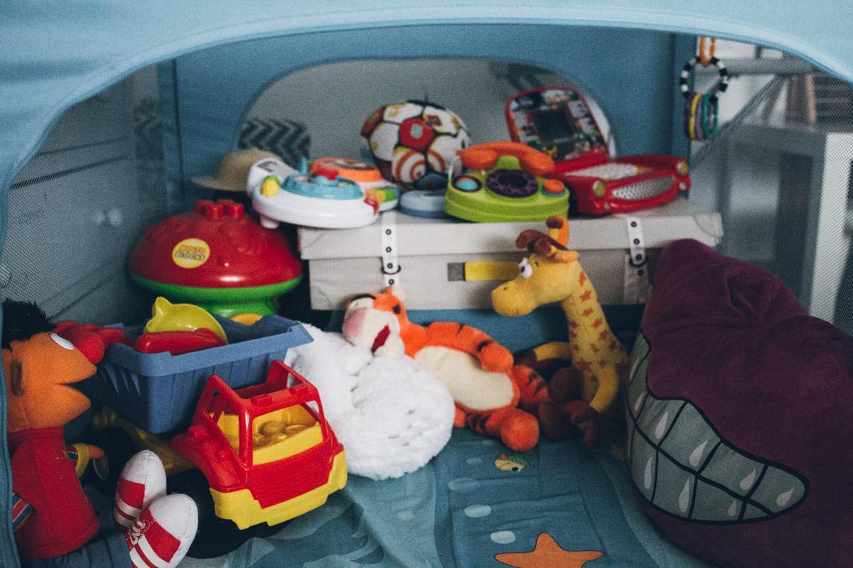 Tiene una cremallera lateral que le permite salir y entrar cuando ella quiera y al ser cuadrado tiene mucha capacidad para que sus juguetes estén recogidos siempre.