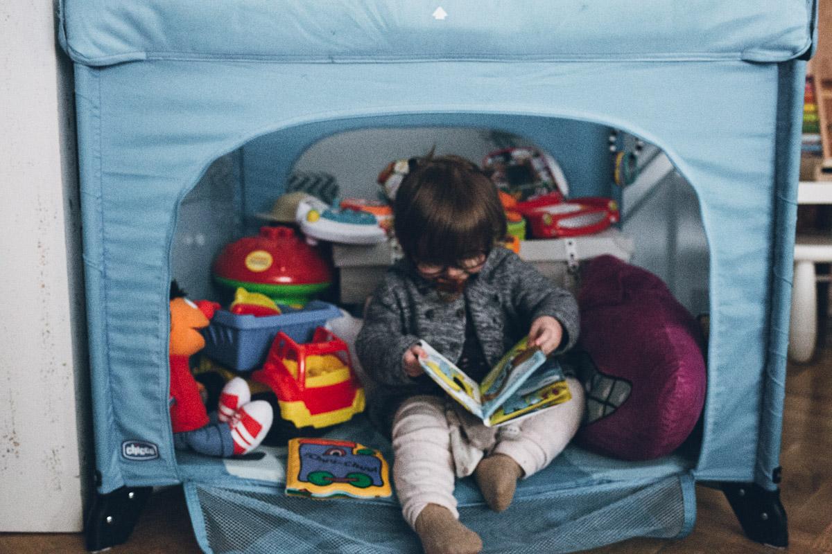 Para mi es muy cómodo saber que tiene todo en un mismo lugar. Olivia está encantada con el y se sienta a su aire a jugar o a “leer” pero con la confianza de entrar y salir cuando quiere.