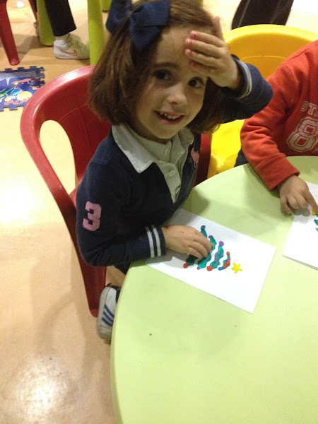 Pero el viernes no acabó aquí, no...Luego fuimos a piscina con Daniela y después todavía le quedaban energías para ir a la guardería (donde vamos a la piscina tienen una guardería para que los niños jueguen y pasen un rato genial mientras los padres disfrutan de actividades deportivas o acompañan a otro hermano a sus clases) a jugar un rato y hacer su postal navideña con plastilina.