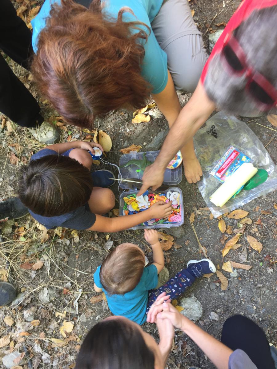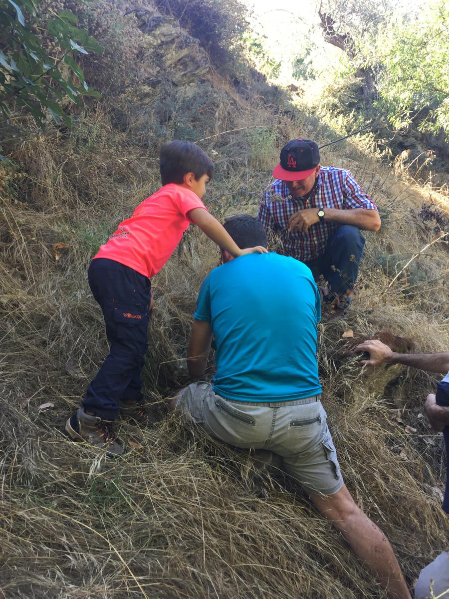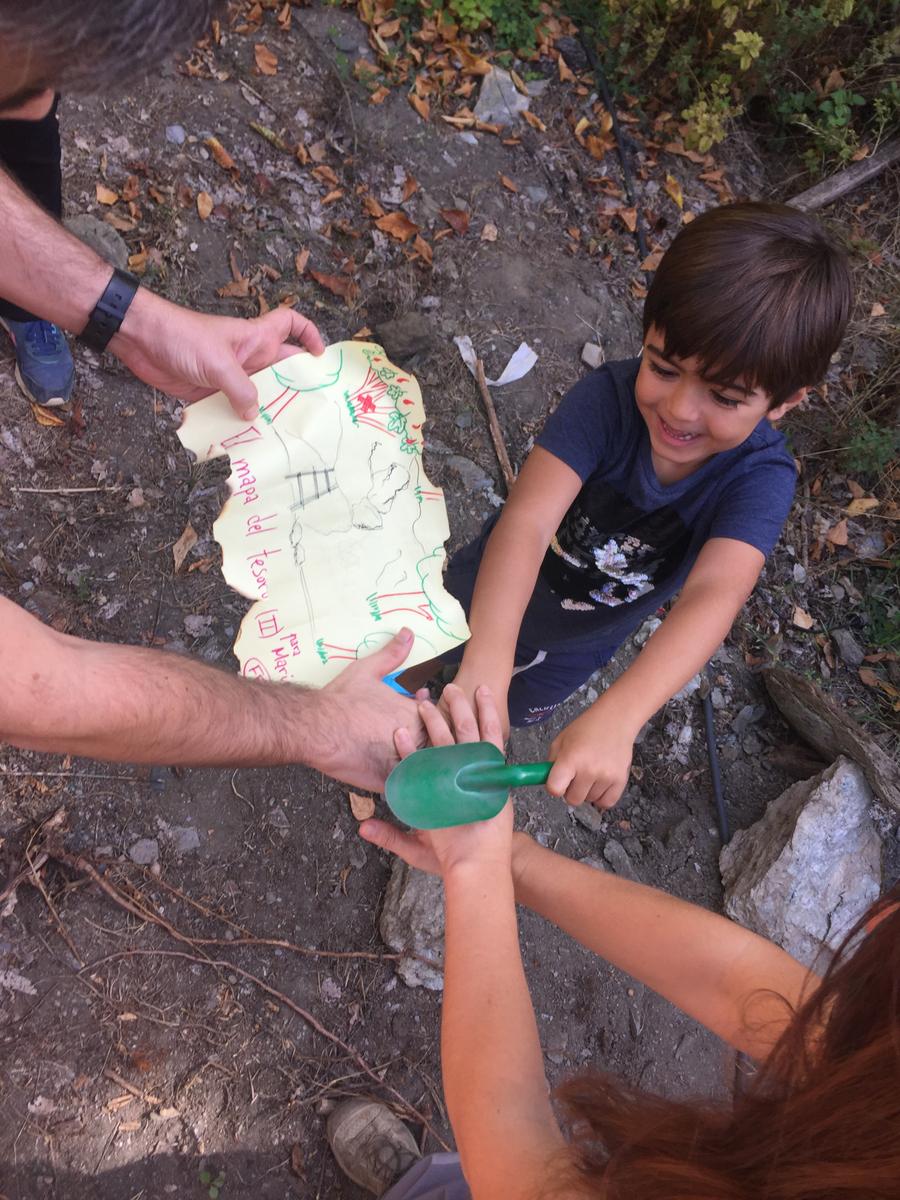 Antes de nada había que interpretar la leyenda y ubicarnos en el lugar exacto que nos habían indicado. Como habían pasado cuatro años y la naturaleza y el paisaje no son estáticos, no hubo forma de encontrarlo en el lugar que había sido enterrado. En este momento en el que los adultos estábamos decepcionados, a los niños les explicamos que necesitábamos un mapa más preciso que nos lo tenía que facilitar otra amiga y que volveríamos de nuevo a buscarlo, y su reacción fue sorprendentemente positiva, pues lo entendieron a la perfección.