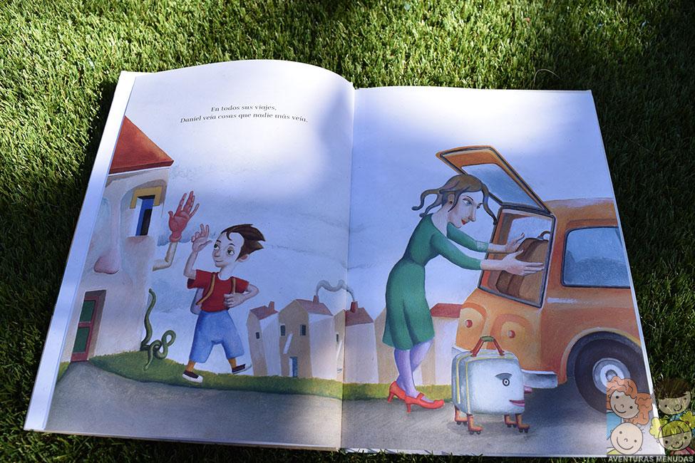 El cuento está indicado para niños de entre 4 y 8 años. La verdad es que es muy fácil de leer, pero a veces, según el niño, no es tan fácil de comprender. El peque necesita referencias para entender qué es lo que ve Daniel y por qué está viendo eso. Si no ha visitado los lugares que describen en las páginas del cuento, resulta difícil entender por qué esta viendo eso Daniel. Os sugiero que os apoyéis con imágenes de los lugares que describen en el cuento, porque esto les hará más fácil vincular un espacio real con lo que nos detalla el cuento que está viendo Daniel. Al final de esta reseña os dejamos unas cuantas imágenes que os pueden servir para apoyar la lectura de este fantástico cuento.