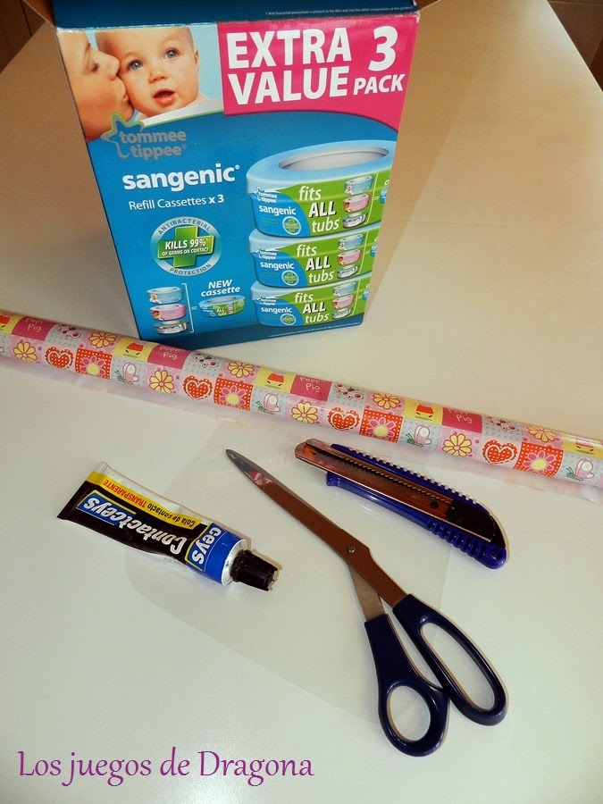 Una de las cajas que guardé hace tiempo fue de los recambios del contenedor de pañales.
