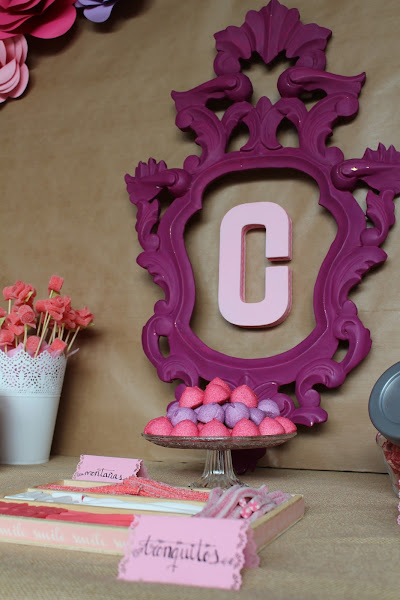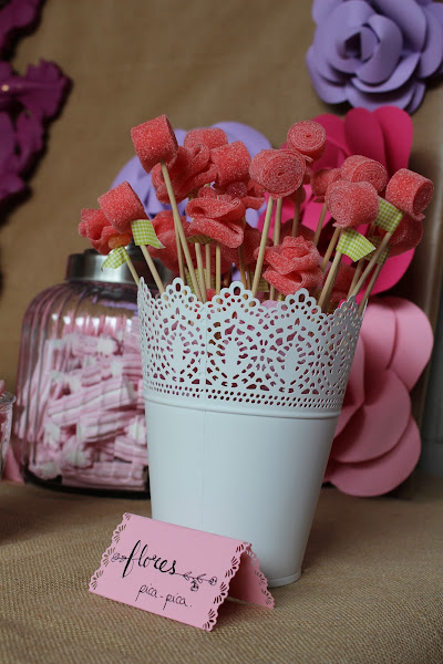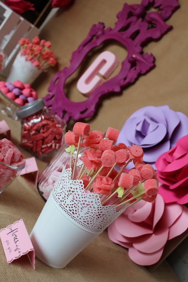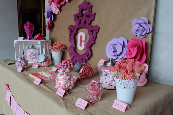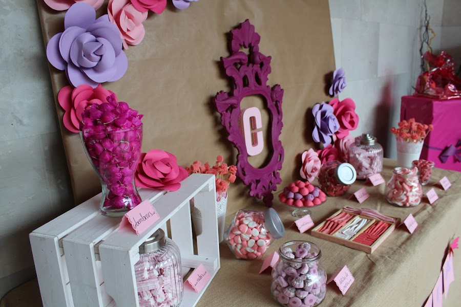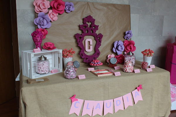 Con respecto a la decoración de la mesa optamos por hacer unas flores de cartulina súper vistosas como podéis ver en las fotos. Y como vale más una imagen que mil palabras os dejamos con unas fotos para que podáis ver con más detalle todo lo que preparamos para Claudia y toda su familia y amigos.