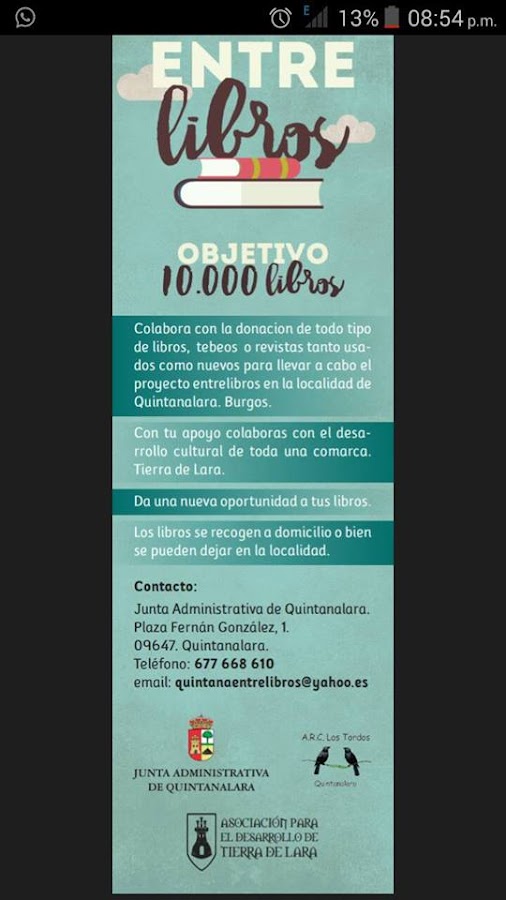 Han recibido muchos libros, y esperan recibir más, pero les queda la tarea más difícil, catalogar y registrar uno a uno cada uno de los libros. P ara todos aquellos que estén interesados en ceder ejemplares para que recorran el mundo viajando de mano en mano: 677668610 y quintanaentrelibros@yahoo.es