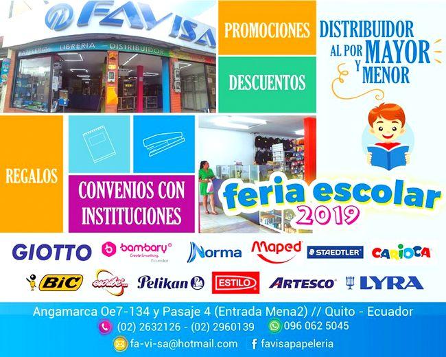 Tiene un amplio portafolio de productos en papelería, escolares, material lúdico – artístico, y artículos de oficina al por mayor y menor con productos de calidad y precios para cuidar la economía de sus clientes, por medio de un excelente servicio, generando además de una rentabilidad un beneficio mutuo. Sucursales en Quito y Tumbaco, envíos a provincias. Teléfonos: (02) 330-0625