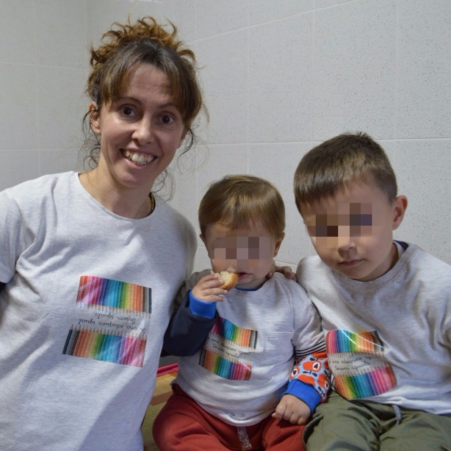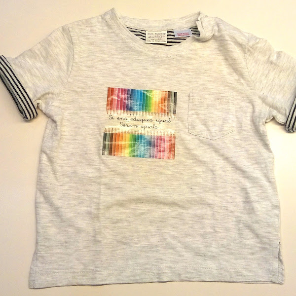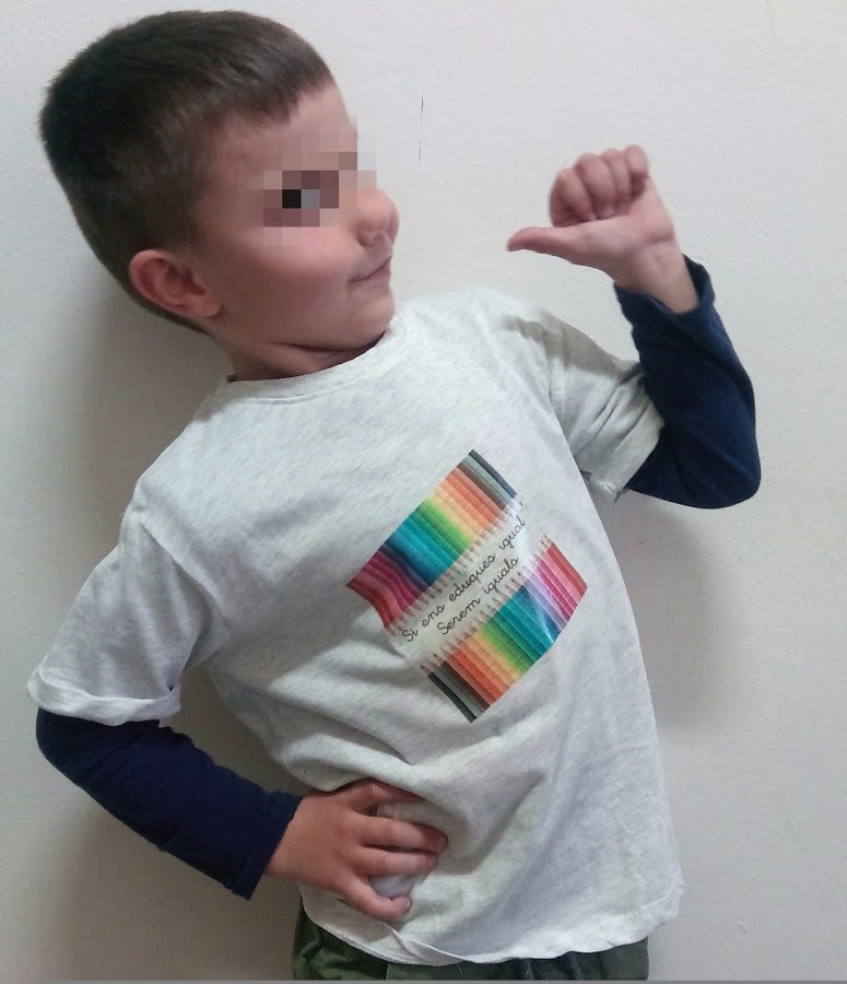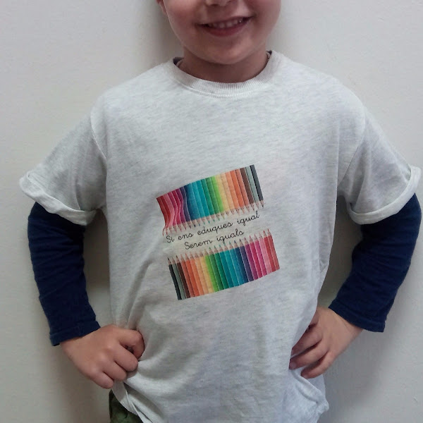 Aquí mi orgulloso niño que me ayudó a planchar y quitar el papel de su camiseta. Ah, y colocarlo donde quiso, "així de costat" pues de lado se quedó.
