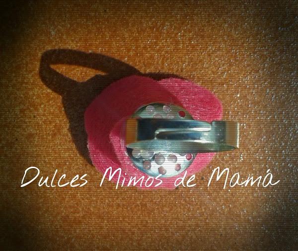 Como podéis ver son rosas hechas con fieltro de color morado y rosa, aunque pueden ser de cualquier color. Tanto el anillo como los pendientes están pegados con silicona sobre sus bases de plata. El aro del anillo no es cerrado, sino que está abierto por lo que se acopla a cualquier tipo de dedo.