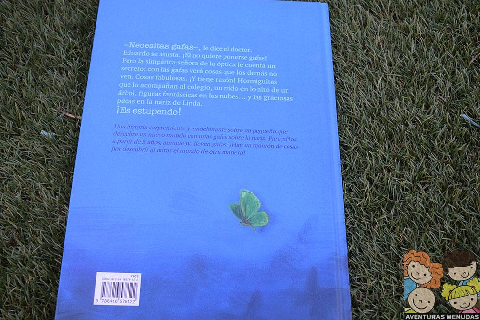 <‘Tu necesitas gafas!’ dice el médico. Eduardo da un brinco. ¡No quiere llevar gafas! Pero en la óptica, la vendedora le cuenta un secretito: con gafas verás cosas que otras personas no ven. Cosas especiales.>