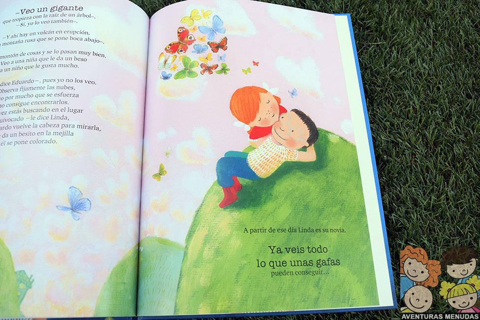 Y poco a poco y gracias a ver su mundo de otra manera, con otros ojos, Eduardo comienza a descubrir las formas en las nubes, los juegos divertidos de veo, veo, los vuelos de mariquitas, el camino de las hormigas, y una nueva amistad que se convierte en algo más….