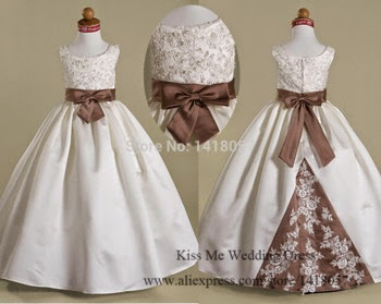Cuando mi hija hizo la Primera Comunión, yo no me podía permitir comprarle un vestido de comunión, así que llevó un vestido precioso en color "blanco roto", con unas lazadas a los lados haciendo un zigzag, en tono rosa. Lo encontré en la sección de vestidos de fiesta para niñas de El Corte Inglés, (no parecía para nada que no era de comunión) y sabéis que? que tan sólo me costó 150???, cuando el resto de vestidos de comunión rondaban los 600???.