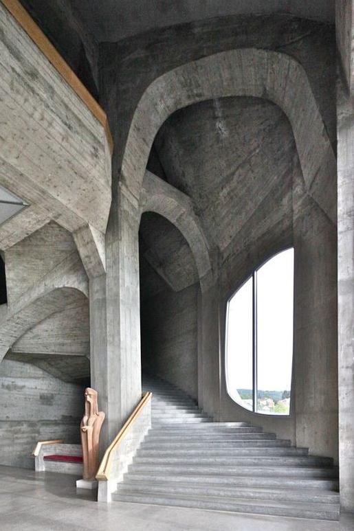 Me centraré primero en el propio edificio del Goetheanum (llamado así en honor al poeta y científico Goethe). Con esta construcción (cabe decir que el actual es el segundo Goetheanum, puesto que el primero se quemó), Rudolf Steiner creó el estilo de arquitectura orgánica, es decir, un estilo en el cual -de la misma forma que una planta- cada parte, cada forma, cada color está en estrecha relación con el todo, y que este todo se refleja también en los elementos individuales.