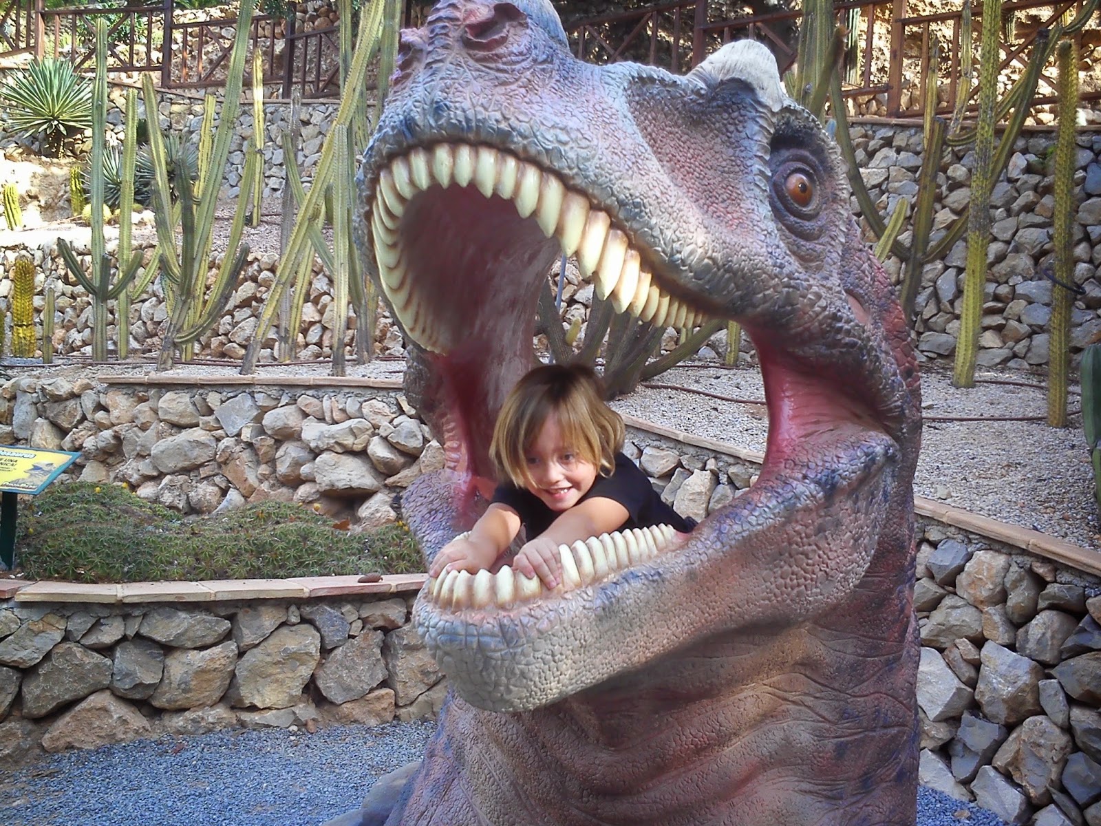 A las 7:30 cansados de luchar en la cama entre mini piernas y minibrazos trepandote, sin conseguir dormir, nos ponemos en pie, preparativos varios y a las 9:30 como un clavo en el sitio acordado para empezar la aventura de hoy, DINOPARK, en el Algar.