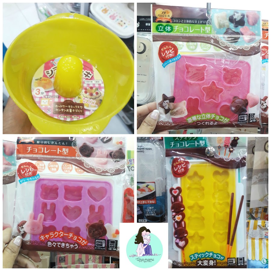 Lo que fui a buscar en sí de la tienda fueron cortadores o moldes para los huevitos. Hay variedad para la gelatina (como el primero que tiene 4 caritas blancas), moldes para huevos de codorniz o huevos tamaño normal. Además habían moldes para òner en la sartén y que el huevo frito tenga forma.