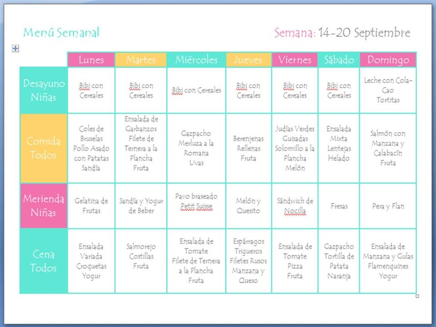 TU TURNO: ¿Cómo organizas tú los menús semanales? ¿Te animas a planificar tu menú semanal?