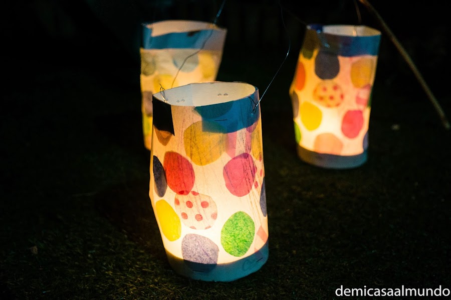 Otra de las fiestas que también preparamos con antelación es la de San Martín, una semana antes empezamos a cantar sus canciones, y preparamos estos farolillos de papel, para acudir a la fiesta del farol.