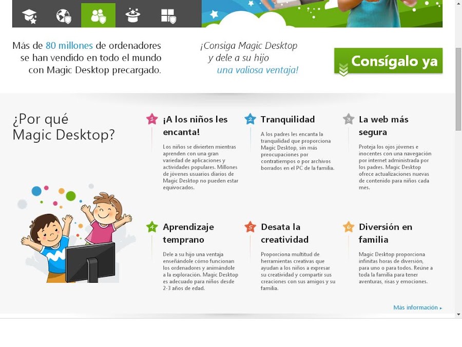 "Magic Desktop inspira a los niños a aprender, protege su seguridad online y protege de daños a su ordenador."