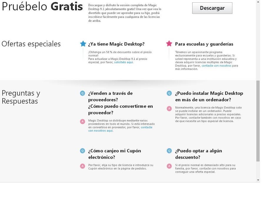 Si picas sobre ella te salen las distintas opciones de compra según el uso que vayas a hacer de Magic Desktop.