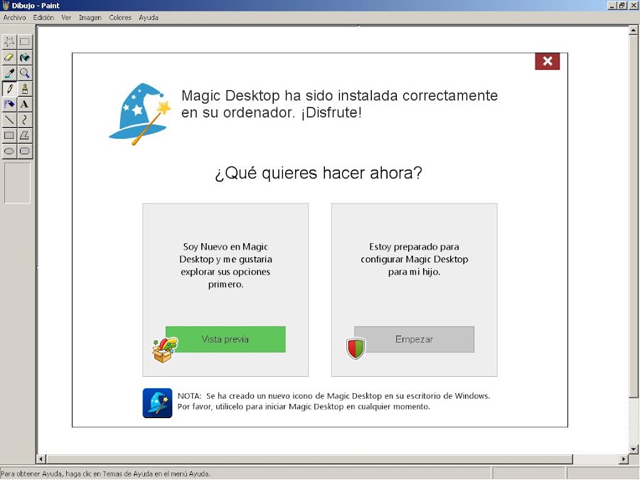 1. Si le das a la primera opción de vista previa, se quedará sin configurar Magic Desktop.
