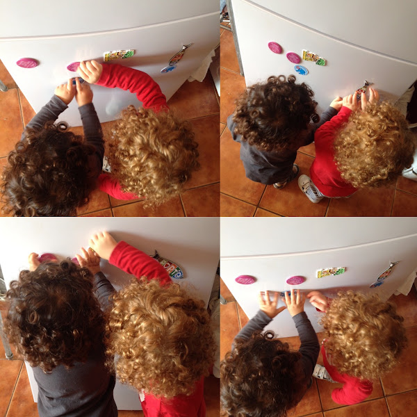 ¡Ni que hubieran visto a la mismísima Peppa Pig en persona! ¡qué fiesta montaron! para luego estar absortos en una de pegar y despegar imanes y hacer cambios entre ellos por un montón de tiempo. Tanto, que pude terminar de preparar la comida de los seis sin ningún tipo de problema.