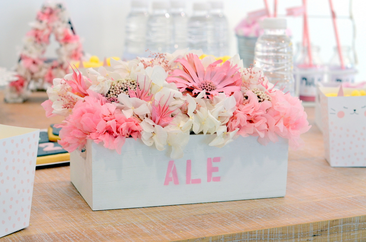 Para la decoración confiamos en COCONÓ shop, si lo hubiera pillado el día de mi boda… Me quede impresionada con los centros de flores, las cajas para las chuches… El numero 2 y la A con flores que no hizo de sorpresa a última hora. INPRESIONANTE.
