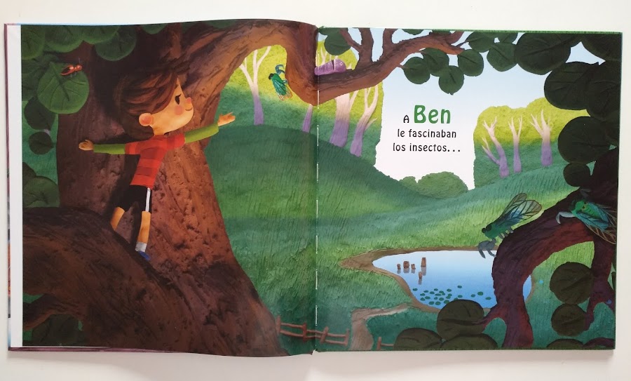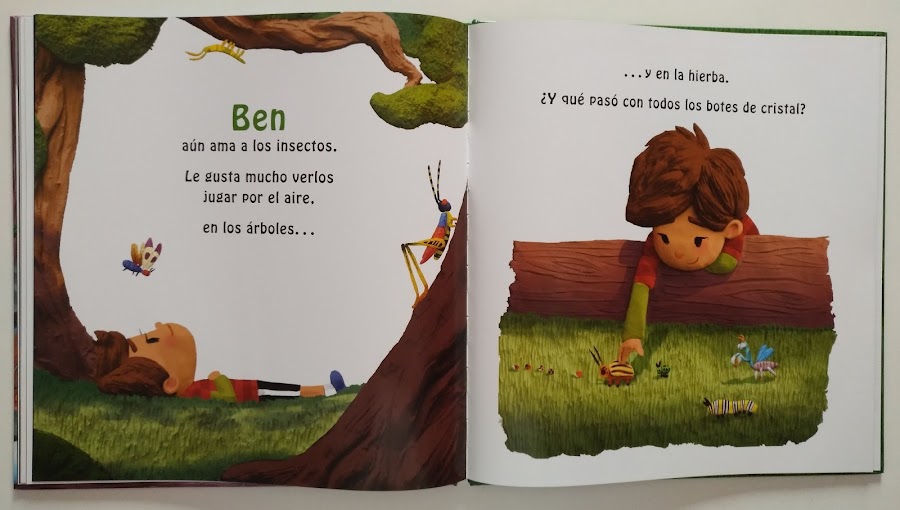 El protagonista de este precioso libro es Ben, un niño inquieto y curioso al que le encantan los insectos: pequeños, grandes, con largas patas, voladores, saltarines, que floten y naden...